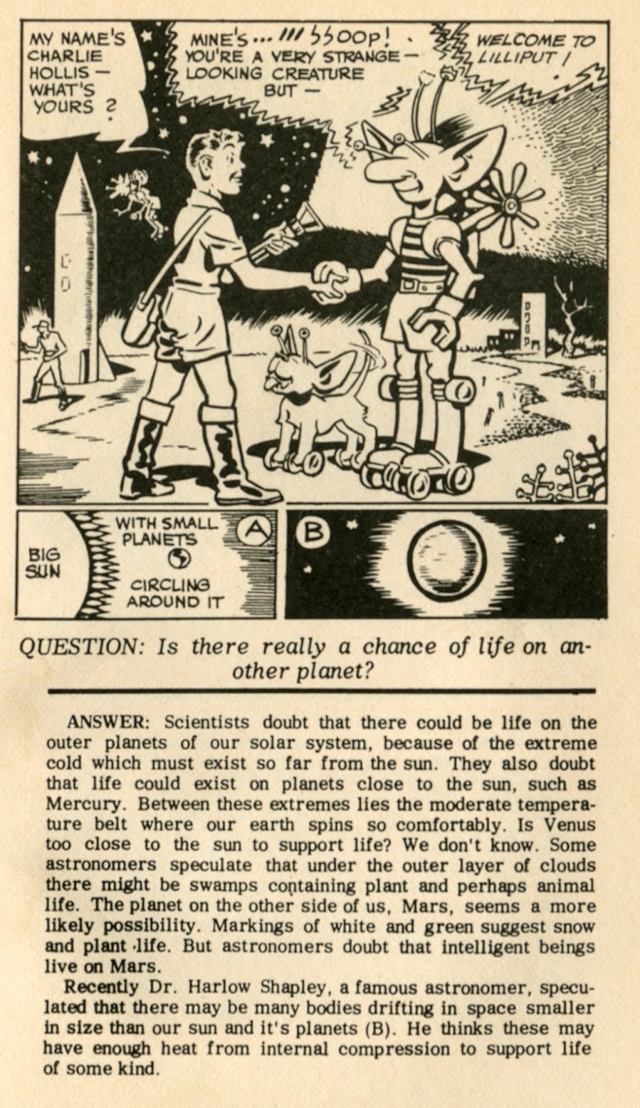 Space Answer Book is a collection of illustrations and questions about space flight. Because the title page says courtesy of The Associated Press, I think these were published in newspapers as a news item or filler.