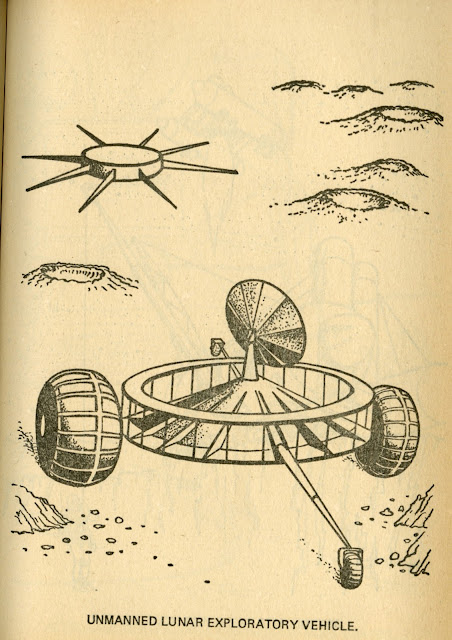 This is the best of the books for great futuristic illustrations of Moon exploration. They chose many of the possible vehicles and habitats.